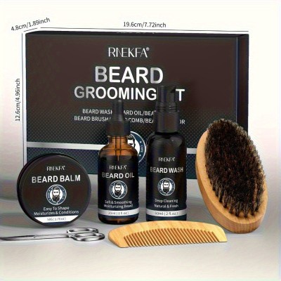 Men's Beard Grooming Set, Beard Oil, Beard Balm, Beard Wash, Beard Brush, Beard Comb, Beard Scissors, Beard Organizer, Beard Care and Trimming Set, Perfect